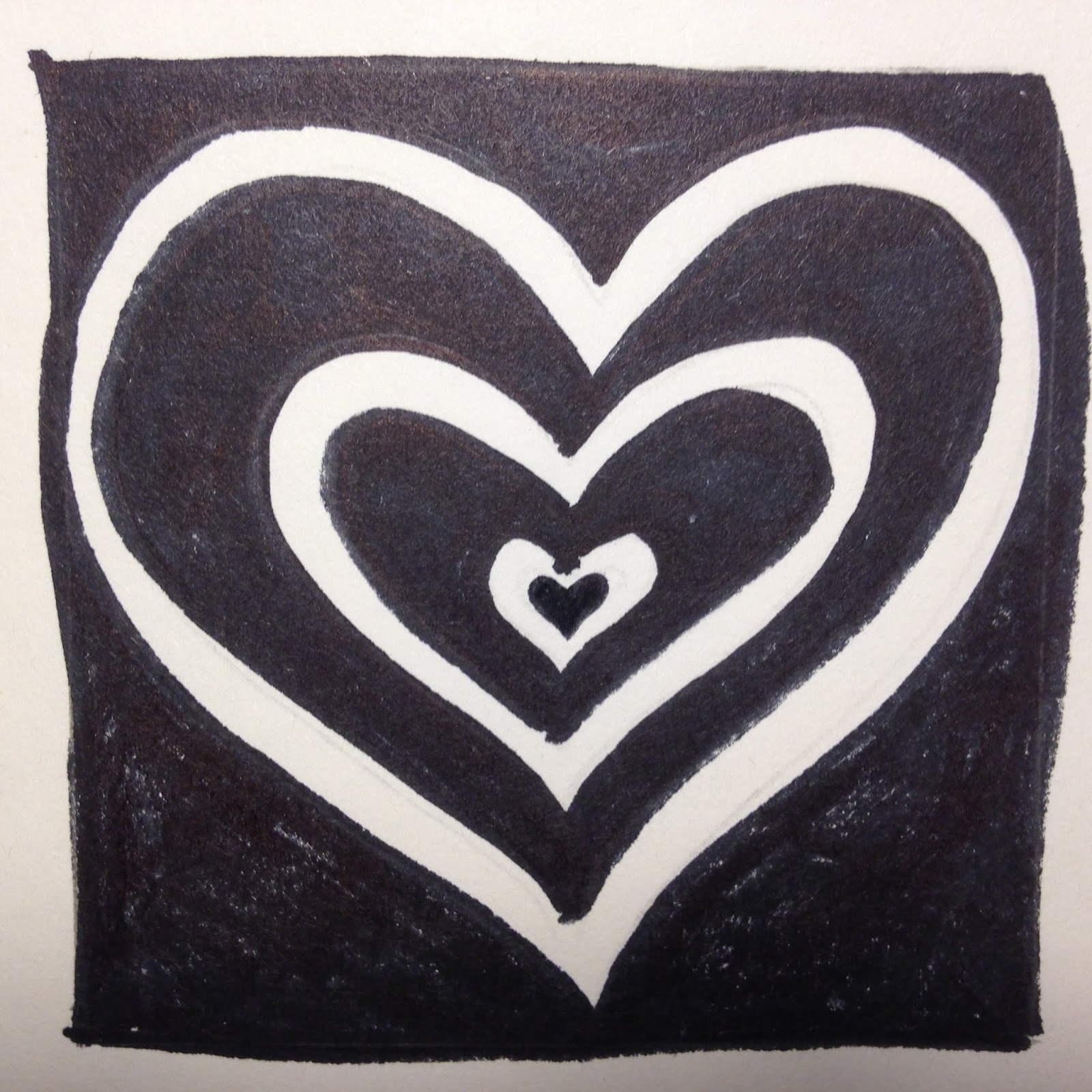 Using an original image of a heart from the drawing with ripped up paper exercise, I explored positive and negative space to communicate ideas about it. Big hearts... small hearts... meeting of hearts... hearts split in two... holes in the heart... black hearts... and the heart of the heart.